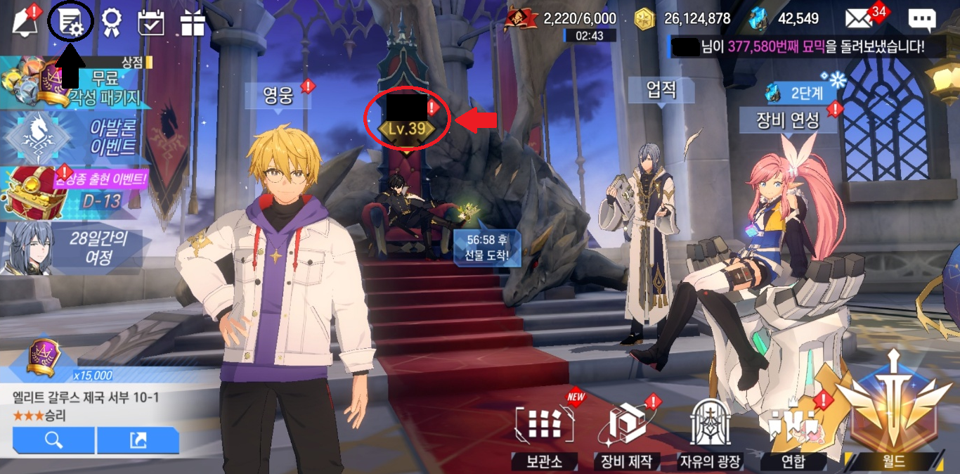 기존 유저는 8월 2일 당일까지 생성된 계정들은 모두 기존 유저입니다. 기존 유저들은 따로 클리어해야하는 미션같은 것은 없고 최근 업데이트 이후 출석보상으로 주는 (대지)린은 기사단으로 영입하면 됩니다.
