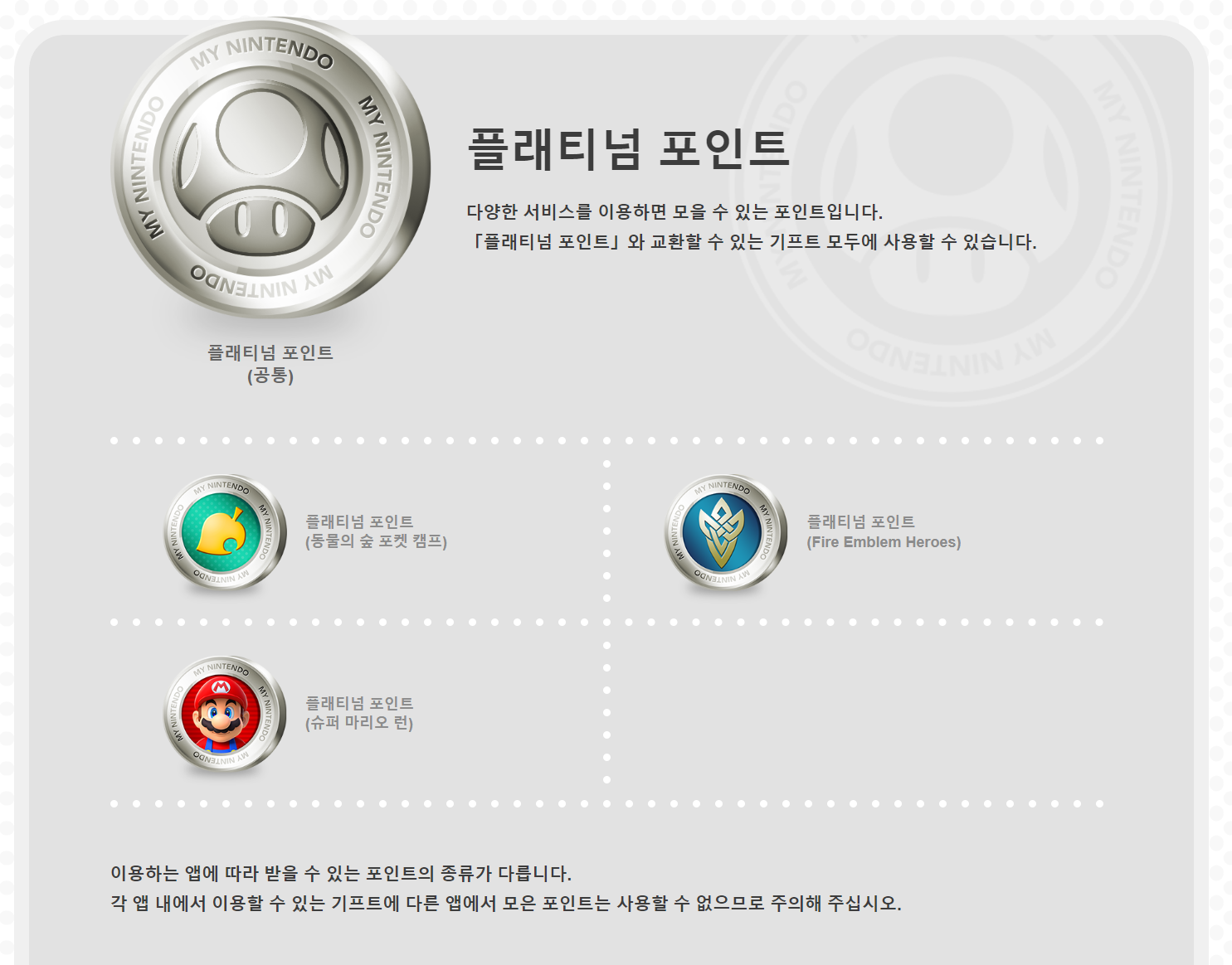 닌텐도에는 골드 포인트와 플래티넘 포인트 이 2종류의 포인트가 있습니다.