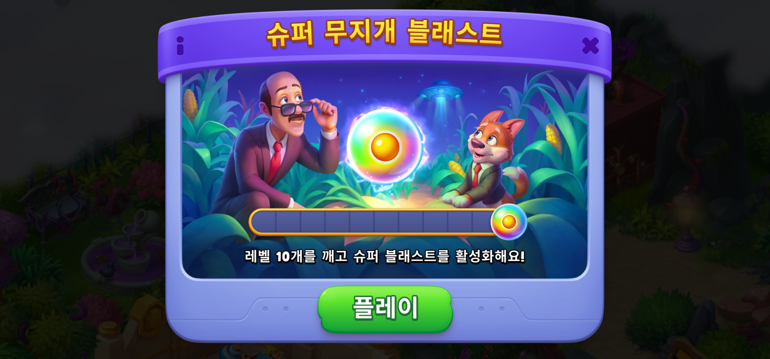 - 슈퍼 무지개 블래스트 : 스테이지 10회 클리어시 블래스트 아이템이 강화되는 효과, 스테이지를 연속으로 클리어 할 필요 없음.