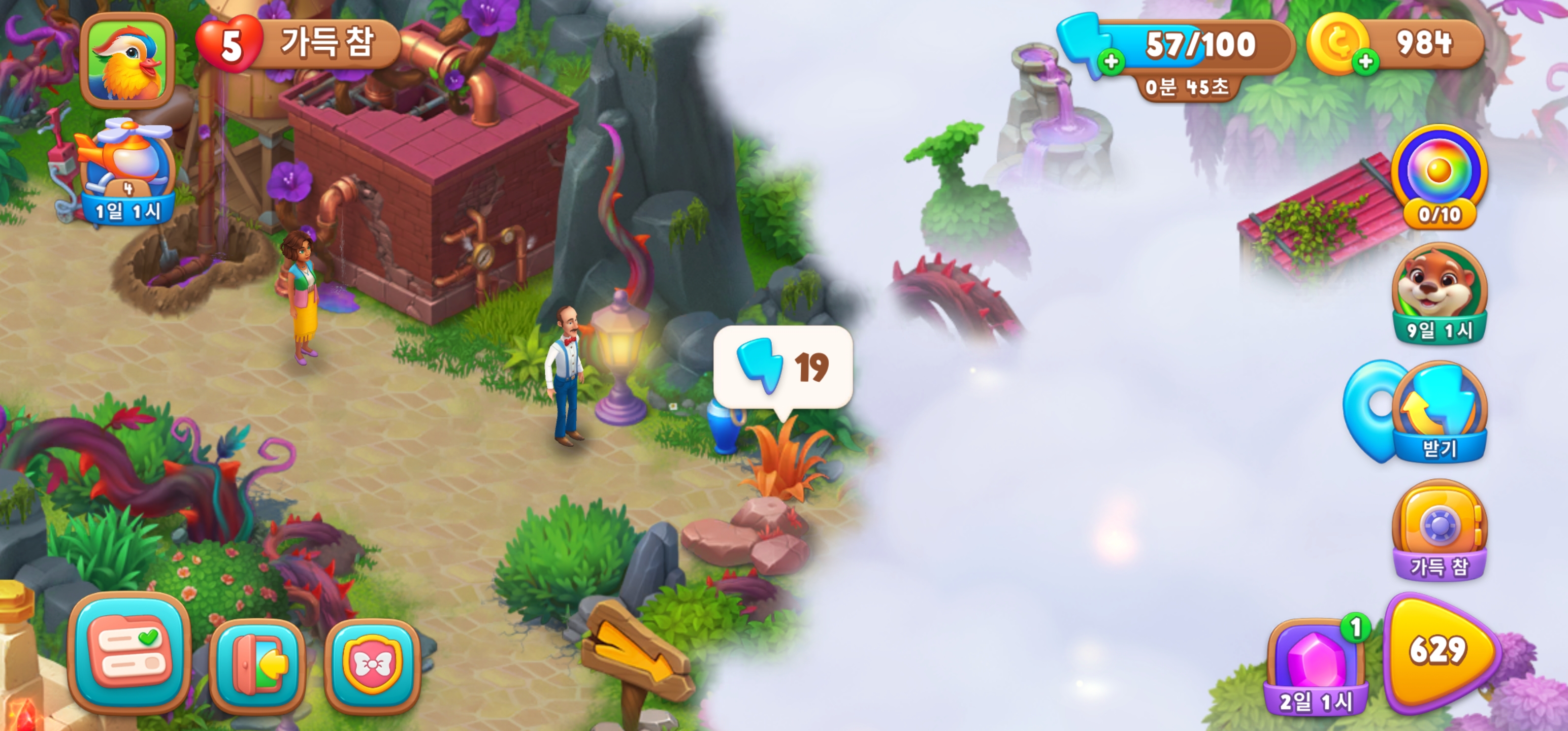 추가) 주황 선물상자 다음 나오는 마지막 미션인 '다음일로 넘어가기'를 누르면 하트를 5개로 꽉 채워주니 하트를 다 소진하고 다음일로 넘어가는 것을 추천