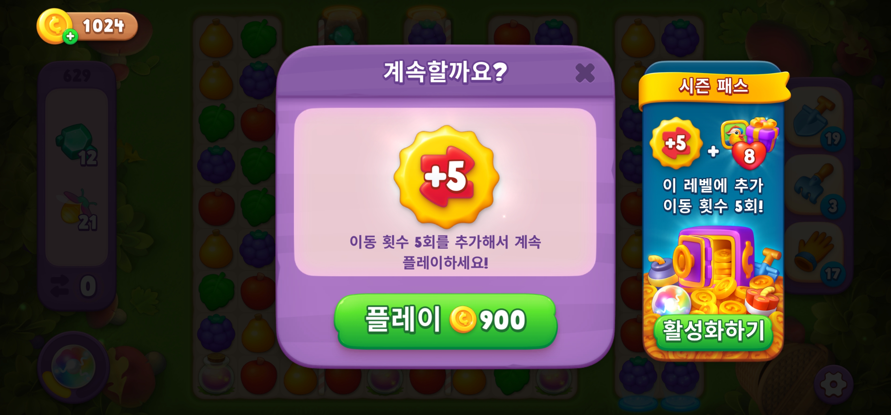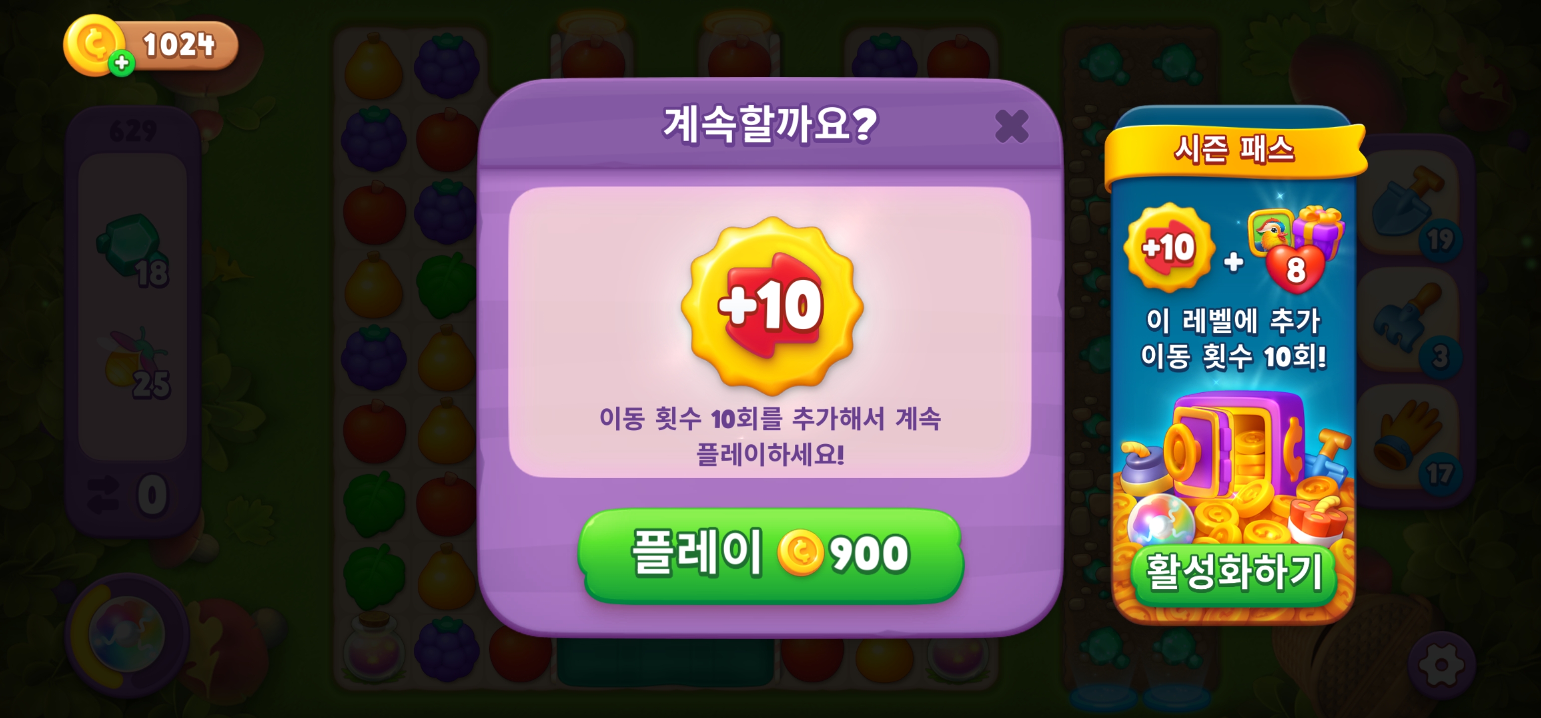 계속 같은 스테이지를 실패하면 "계속할까요?"에 이동 횟수 추가가 늘어난다.