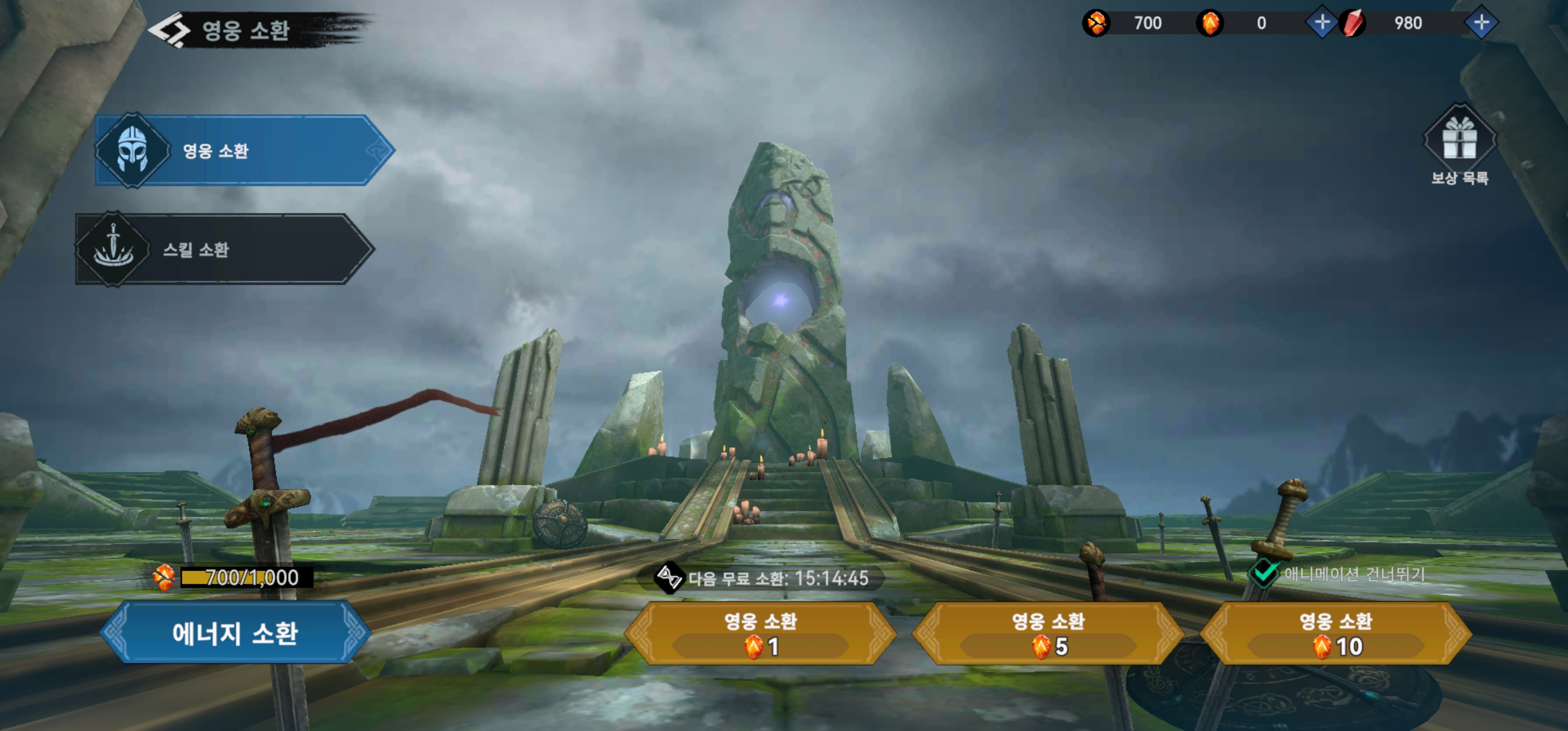 2) 매일 무료 영웅 소환 1회
