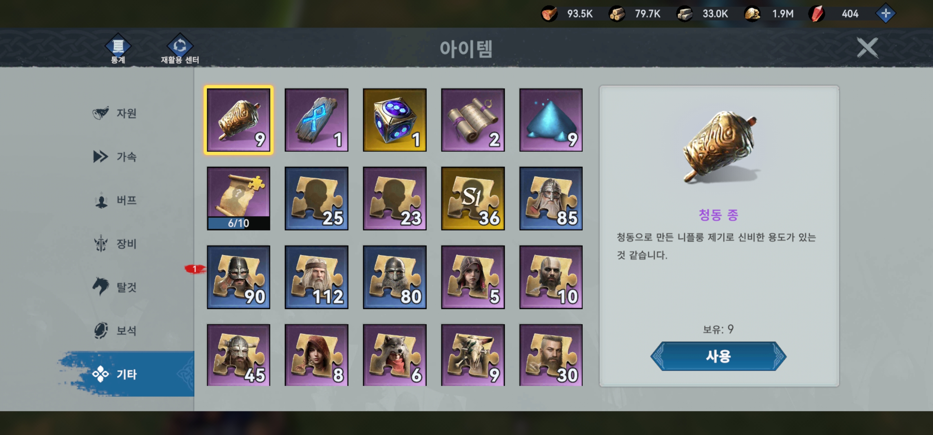- 아르투르 다음에 시구르드(금색, 영웅 소환에서도 획득 가능)인데 Lv. 30까지 해야 조각 10개 모을 수 있어서 이거까지 노리려면 처음부터 빡세게 해야 할 듯.