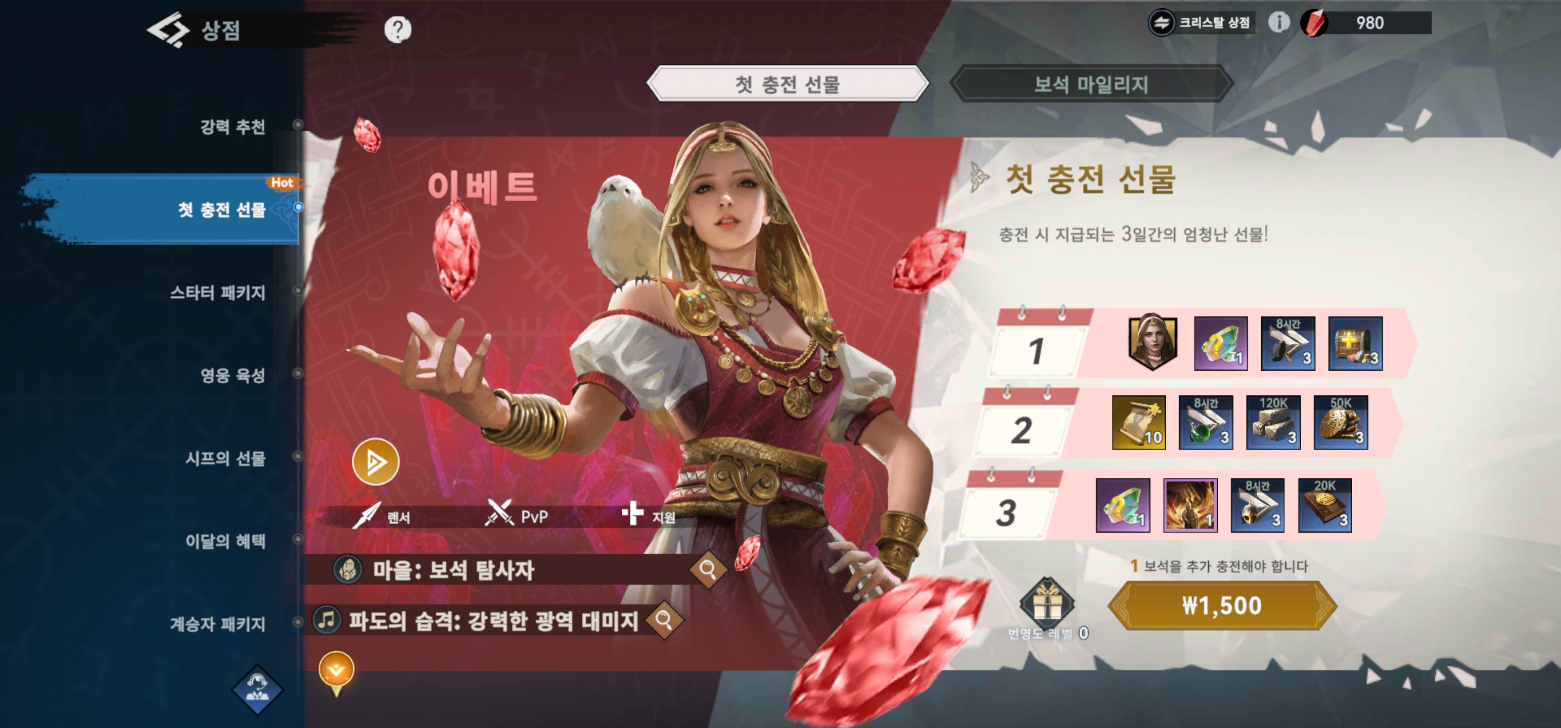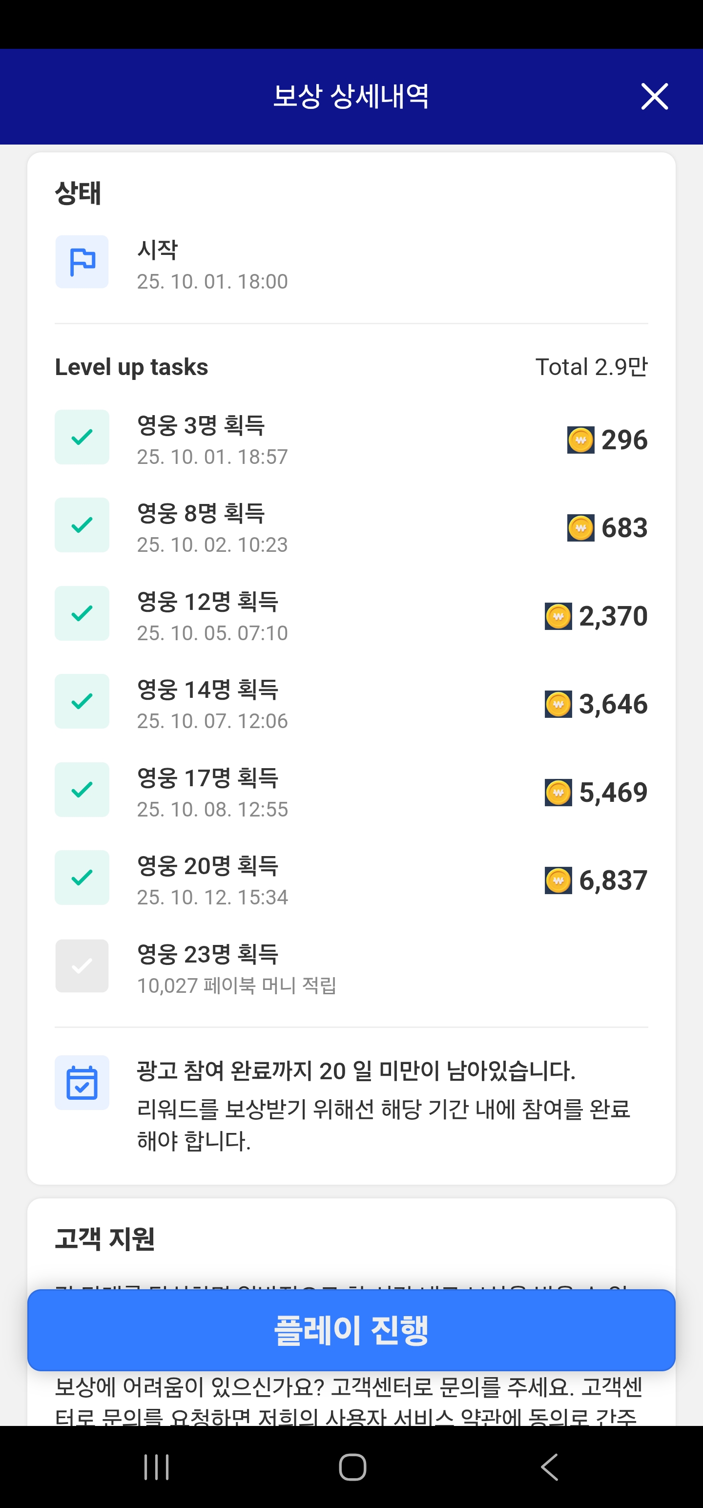 - 보석은 처음에 모아뒀다가 페이백 미션에 쓰고 페이백 미션 끝나면(약 7?8?일 소요) 보석 전부 영웅 소환에 사용.