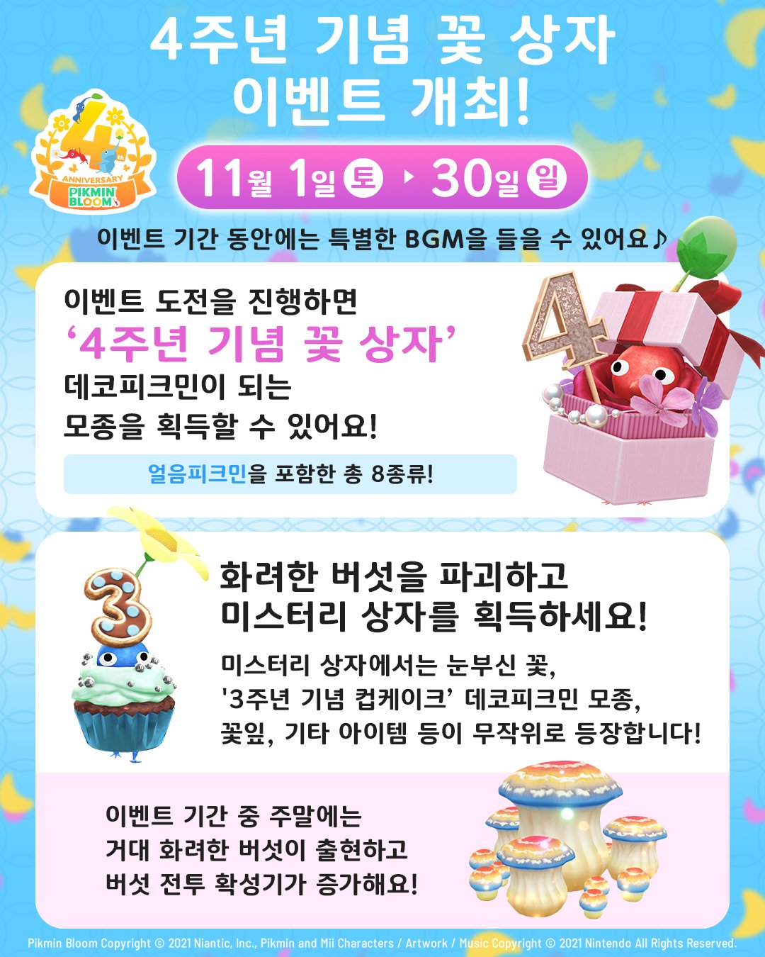 Pikmin Bloom이 4주년을 맞이해요! 4주년 기념 꽃 상자 이벤트로 다 함께 축하해요!